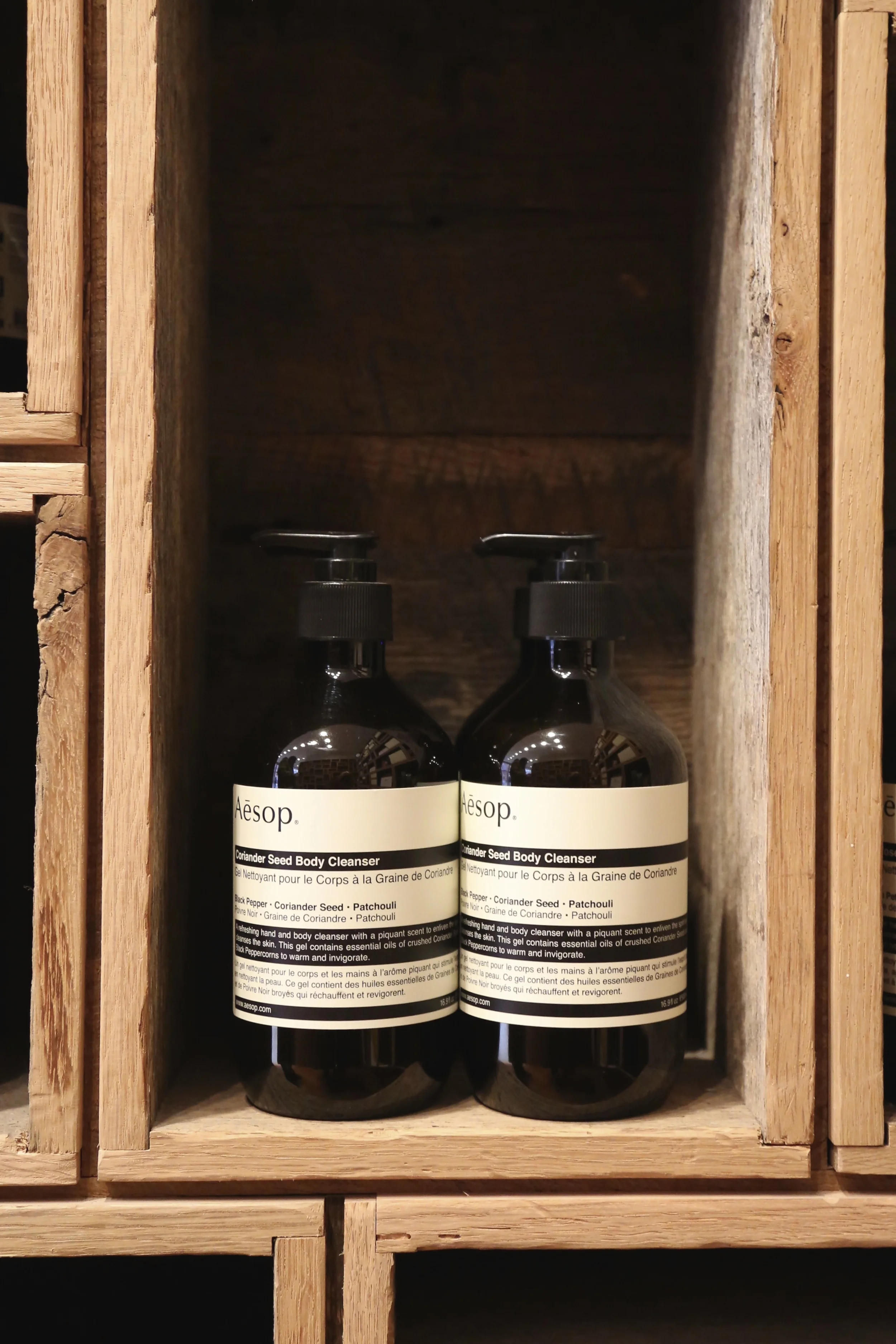 Aesop has many shops in New York and each one has a different and very cool design, to go with the great aesthetics of their packaging. The products themselves are superlative, combing plant-based and laboratory-made ingredients of the highest quality. I use some of their product, combining it with others, but I recommend you visit their shops for yourself to learn about them and which items may be right for you.